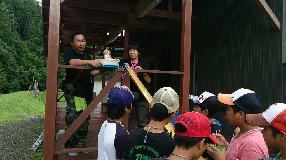 練習の後はお昼ご飯。流しそうめんです!